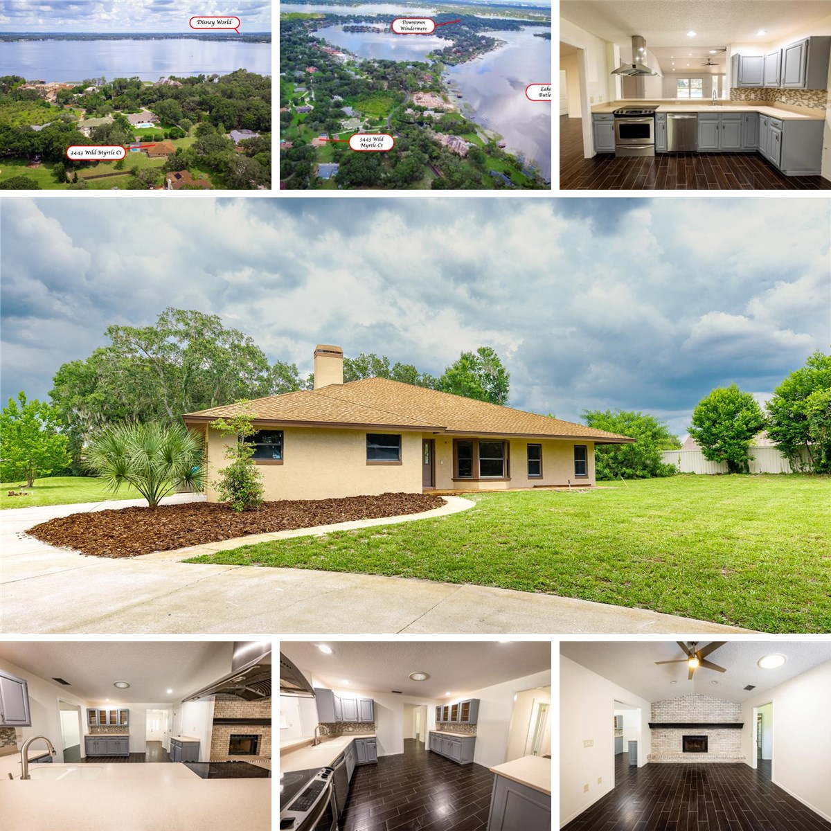 Welcome to 3443 Wild Myrtle Court, a beautifully renovated executive home nestled on a serene 1.2-acre cul-de-sac lot in the esteemed Lake Butler Estates of Windermere, Florida. This expansive 5-bedroom, 3-bathroom residence offers 2,918 square feet of thoughtfully designed living space, combining modern updates with timeless charm. The home boasts a formal living room featuring a whitewashed brick wood-burning fireplace, a generous 26' x 23' family room, and a dedicated office space, providing ample room for relaxation and productivity. Recent renovations include updated bathrooms, new tiled floors, fresh interior paint, new ceiling fans, and LED lighting. The exterior received a new roof and paint in 2018, ensuring both aesthetic appeal and structural integrity. Enjoy the Florida lifestyle with a newly resurfaced and tiled screened-in pool, perfect for entertaining or unwinding in your private backyard retreat. Situated near Windermere Elementary School and the historic downtown area, this home offers convenient access to top-rated schools, shopping, dining, and entertainment options. Experience the perfect blend of luxury and comfort in this exceptional Windermere residence. Don't miss the opportunity to make this your dream home.