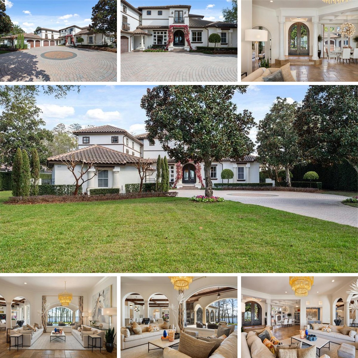 One of a kind extraordinary lakefront estate, perfectly positioned along the shores of Lake Tibet Butler on the renowned Butler Chain of Lakes, offers over 7,600 square feet of refined living in the beautiful guard-gated community of Keene’s Pointe. Tucked at the end of a quiet cul-de-sac on coveted Greatwater Drive, the residence enjoys one of the most picturesque settings in the community, where timeless architecture, exceptional craftsmanship, and breathtaking water views create a truly remarkable Florida lifestyle. A brick-paver circular drive and stately entry introduce interiors where thoughtful design and luxurious finishes are evident throughout. Expansive living spaces are framed by large windows capturing stunning lake views and filling the home with natural light. The residence features five spacious bedrooms, each with its own private en-suite bath and custom-designed closet systems, along with two additional half baths for residents and guests. The primary suite serves as a private retreat with a natural gas fireplace, automated window shades, completely updated modernized spa-inspired bath and dual closets. At the heart of the home, the chef’s kitchen is designed for both everyday living and entertaining, featuring premium Wolf appliances, a concealed Sub-Zero refrigerator, warming drawer, ice maker, and extensive custom cabinetry. Adjacent living and dining spaces flow seamlessly for effortless gatherings. Designed with entertaining in mind, the home offers two wet bars — one in the main living area and another in the expansive game room , both completely remodeled to reflect todays best design standard's— along with a dedicated theater room for an immersive cinematic experience. Outdoor living is equally impressive. A large screen-enclosed lanai with summer kitchen overlooks the resort-style pool and sparkling lake beyond. The infinity-edge saltwater pool with cascading waterfall and adjoining spa creates a private oasis ideal for relaxing or entertaining while enjoying panoramic water views. Other recent upgrades and remodels include a complete new Savant Smart home system, new floors throughout, new offices 2, upstairs game room, master bedroom , bath and closets, upgraded kitchen and AC Dog run with new laundry. The beautifully landscaped grounds extend to a private dock with two boat lifts, providing effortless access to Lake Tibet Butler and the Butler Chain of Lakes — one of Central Florida’s most sought-after recreational waterways. Furnishings available. Additional highlights include a four-plus car garage with a dedicated golf cart bay for added convenience. Residents of Keene’s Pointe enjoy 24-hour guard-gated security, a private community boat ramp, playground, and the opportunity to join The Golden Bear Club, home to the Jack Nicklaus Signature golf course, clubhouse, dining, fitness, and tennis. This exceptional lakefront estate presents a rare opportunity to experience refined waterfront living in one of Windermere’s most desirable communities.